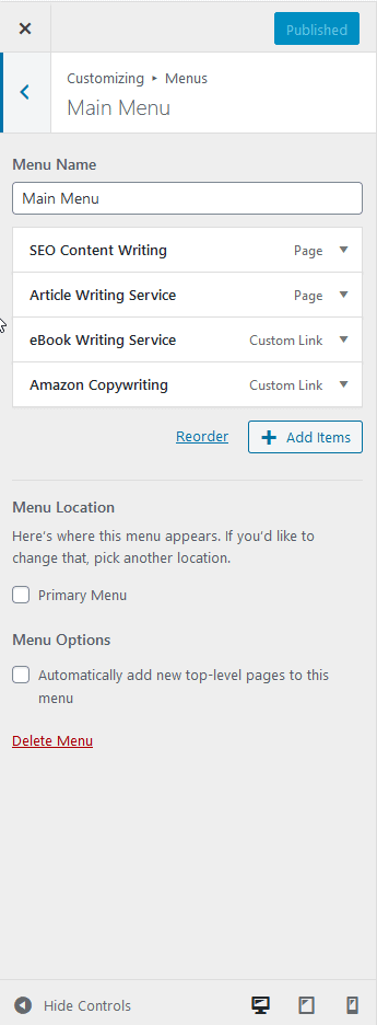 Secondary Navigation – This feature allows you to add a secondary menu location.